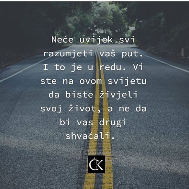 Neće svi razumijeti put,al to je uredu,ovde smo da bi živjeli svako svoj život,
